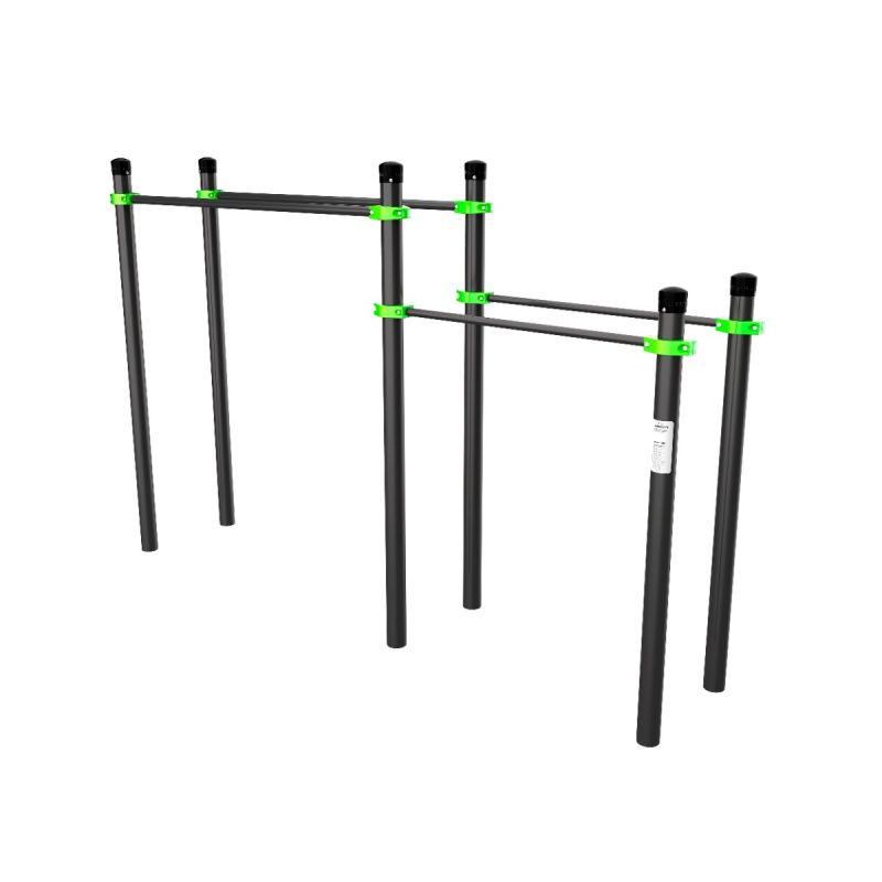 Снаряд с параллельными брусьями на разной высоте позволяет варьировать угол нагрузки и подбирать упражнения под уровень подготовки. Отличный вариант для тренировок с постепенным усложнением, а также для занятий подростков и взрослых на одной площадке.