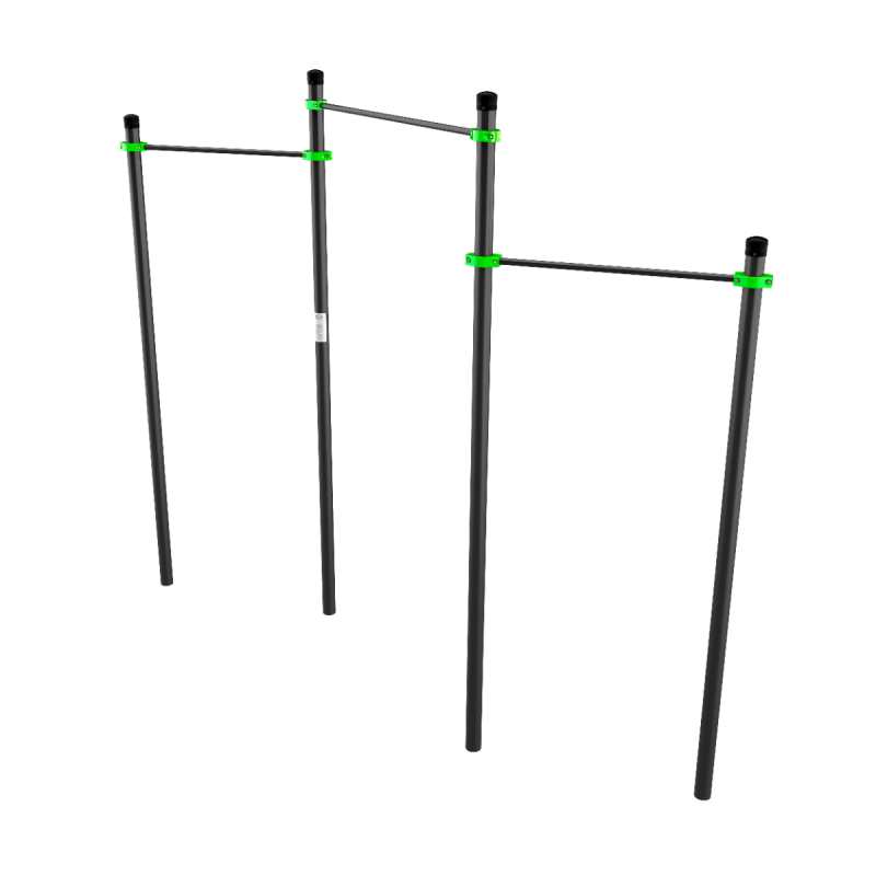 Три турника, расположенные на разной высоте в нестандартной последовательности, из которых средний – увеличенной длины, создают дополнительное разнообразие тренировок и позволяют подстроиться под рост, комплекцию и уровень подготовки пользователя. Отличный вариант для развития силы, ловкости, координации и уверенного освоения подтягиваний на перекладине.